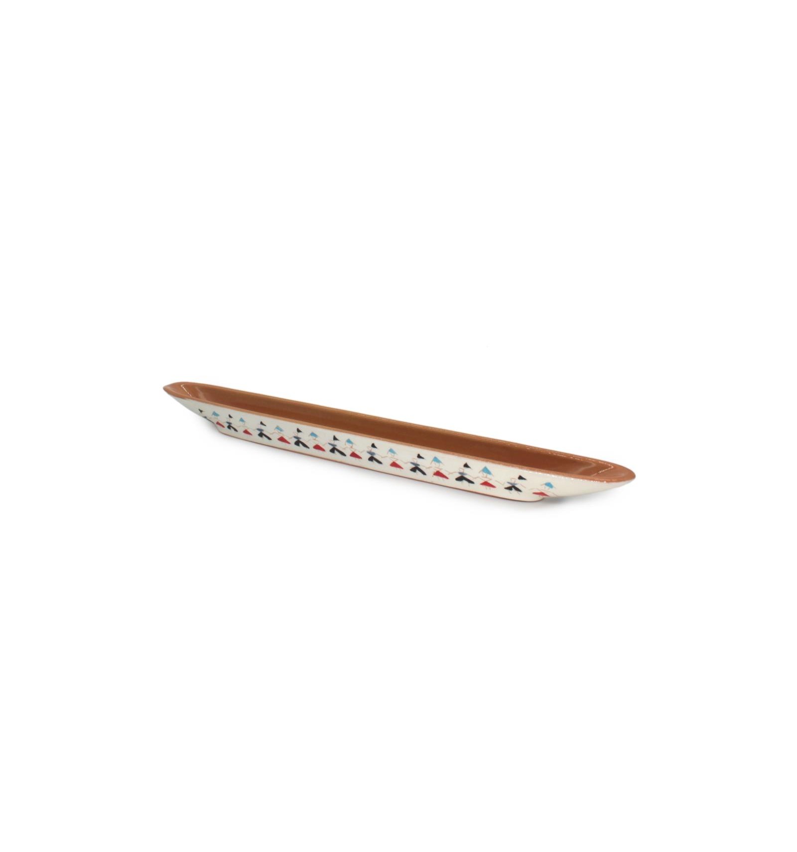 Vassoio barca porta olive "Su Ballu Tundu" dell'artigiana Ninetta Rizzo.