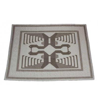 Tappeto sardo manuale realizzato interamente a mano, bicolore, campo semipieno, con la tecnica "a pibiones', con il telaio tradizionale. La lavorazione manuale del tappeto sardo lo rende un pezzo unico, una vera opera d'arte.